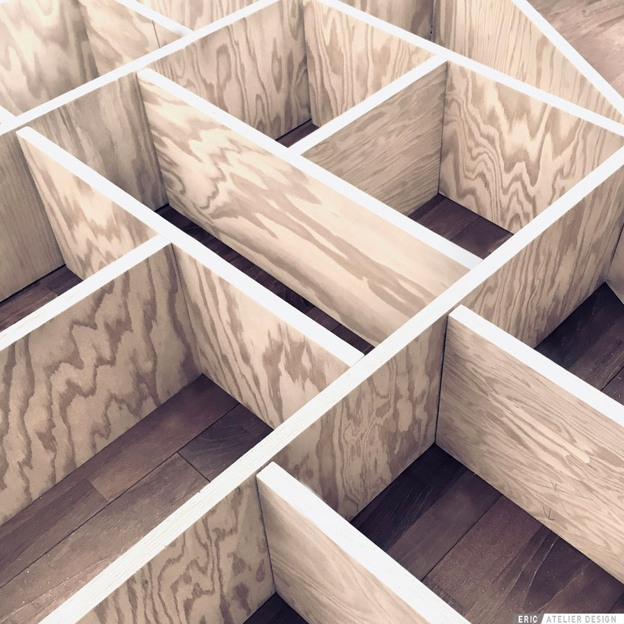 Ma proposition s'oriente vers un principe de meubles-cloisons réalisés sur-mesure...