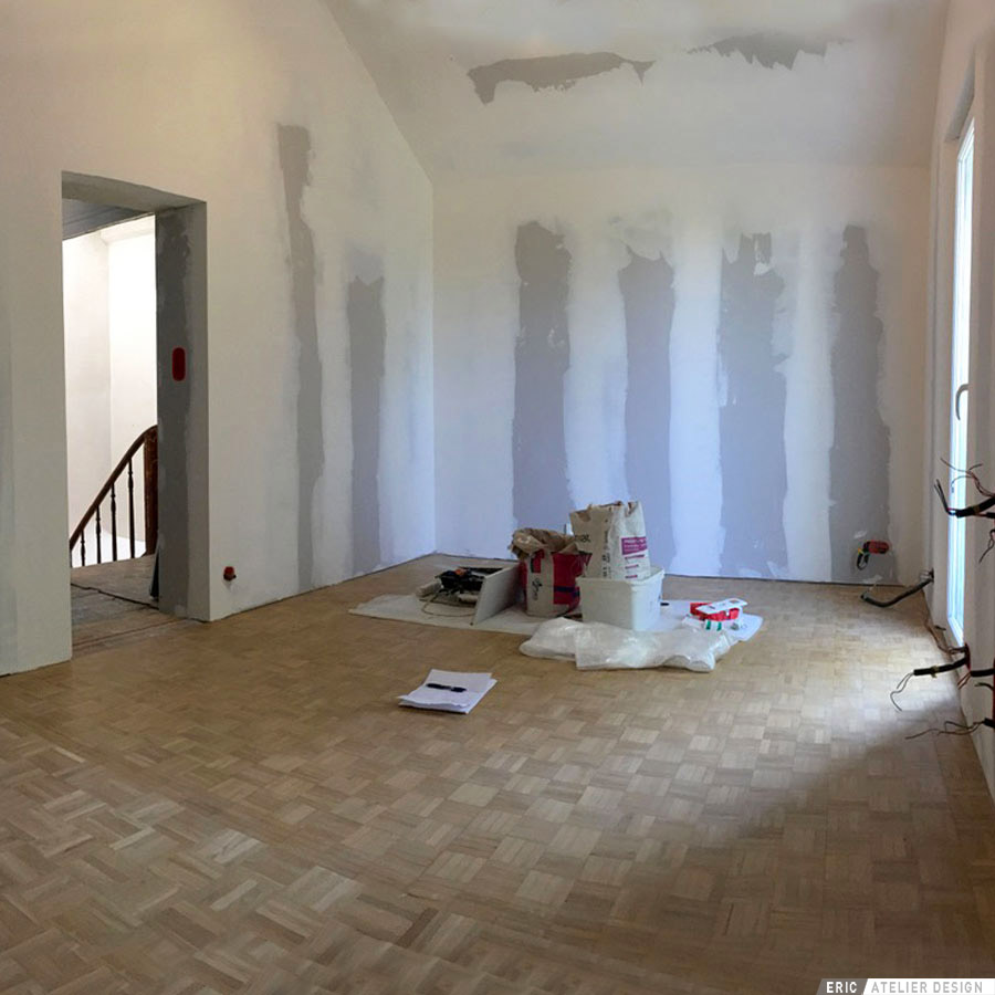 Mon intervention démarre plusieurs mois avant la rénovation complète de la pièce, ce qui facilite ma tâche, nous permet d'étudier le nouveau mobilier, mais également les aspects techniques et l'ambiance globale de la pièce : revêtements et éclairage.