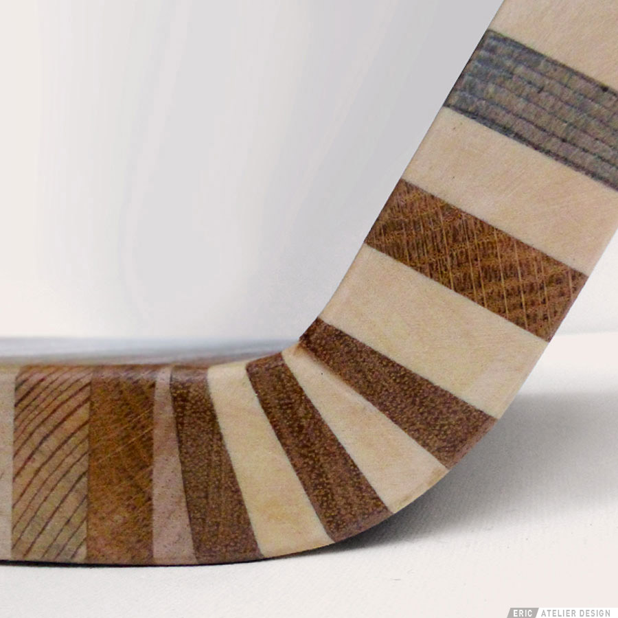 Deux versions sont proposées : en bois recyclé et contre-collé, de différentes essences à choisir selon stock ; ou d'une fine feuille de métal, en acier, inox ou aluminium.